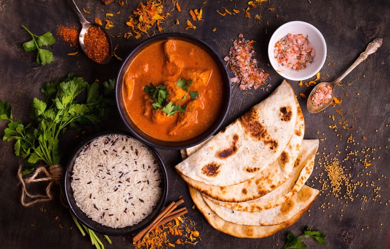 Our signature Butter Chicken features tender tandoori chicken pieces simmered in a rich, creamy tomato-based sauce with aromatic spices. This crowd favorite is perfectly balanced with butter and cream, served with your choice of naan or rice.